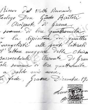 Insieme alle foto degli affreschi è riportata la ricevuta del pagamento dei lavori per un importo di 4.000 Lire.