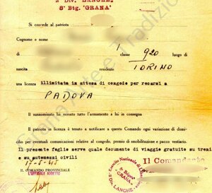 Sono qui riportate le copie di alcuni documenti originali degli anni delle Resistenza e per ovvi motivi i dati personali sono stati resi illeggibili.